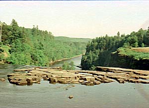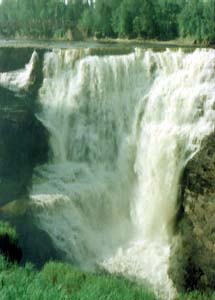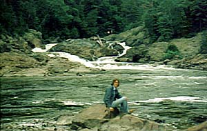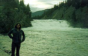 Neither of us have a watch so we have no idea what the time is. About 5:00 we had supper at McDonald's in Thunder Bay then we drove over to Kakabeka Falls. There was a fence around the 200' cliffs but Bill and I managed to climb over them for a closer look. I was unable to persuade Bill to jump so I could win the photo of the year award. We picked up a male hitchhiker even though it was against our rules and contrary to the green hand painted sign we had posted in our window "Girls Only".