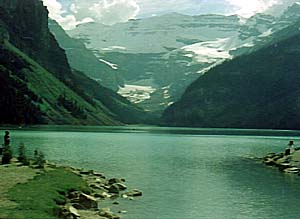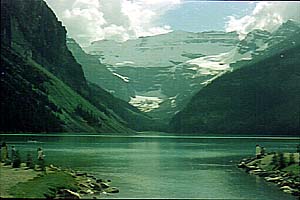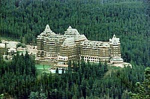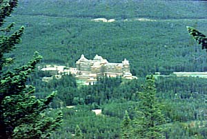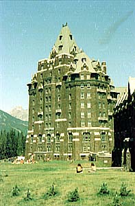 Amazing enough, Bill and I washed our clothes the next day. Edgar insisted his cotton shirt shrunk. Around 1:00 we arrived at Banff Springs and went directly to the hotel. We walked through the lobby wearing our grubby jeans and jean jackets while everyone around us were in suits and ties. Eventually we were directed to Chef Amsler who was busy. He left us standing foolishly in the middle of the 500' long kitchen. Half an hour later he came out again, looked us up and down and said, "you must be the fellows from down east. Come back and see me at 5:00." We left and took a 4 hour tour of the surrounding area then returned to the hotel. We were told to report for work at 7:30 the next morning, but to first go down to the personnel office. We trotted off and filled out some forms while watching a nice looking girl get turned down for employment. When we left, she was outside hitchhiking so after making sure we had no room in the back, we stopped and picked her up. It turned out she was taking a course at St. Lawrence College in Kingston. It is a small world. We let her off in Banff then paid 2.00 at a camping area and set up the tent. Several minutes later the wind blew it down so we slept in the car.