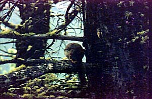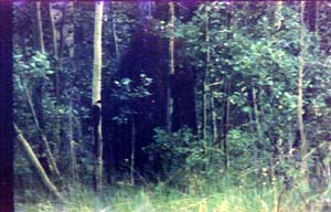 Bill was finished so I talked him into driving 15 miles to a mountain where we had previously seen a cave. We could see it clearly from the road but it still took us about 30 minutes to find it. It was 40' up the side of a cliff. After precariously climbing up we found it was only a slight depression. I thought this might be the wrong one. Bill headed back to the car and I set off through the woods to find another cave. After a half hour of searching it started getting dark so I headed back. About ¾ of a mile before the car I found a large muddy area covered in bear prints. By testing my weight in the mud and comparing how much I sunk in compared to the bear tracks, I calculated the bear's weight at 750lbs. I tried to track him down but then decided that was probably not a wise course of action so I went back to the car. After dark, back at the hotel, Bill and I met Matt (a fellow dishwasher) and we shared some beer in the parking lot. Matt told us about smoking opium in India where he is from. He said he would feel like an ape all over. To demonstrate he began hooting and jumping up and down scratching his armpits. At this point, Bullshit drove by. Bill and I barely got Matt into the ditch before he saw us. The three of us went to the Cabaret to a dance then Bill and I spent the night in the hotel parking lot. Bullshit came along later peering in cars with his flashlight but somehow missed us.
