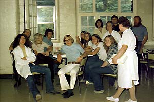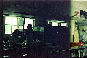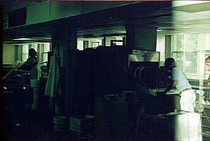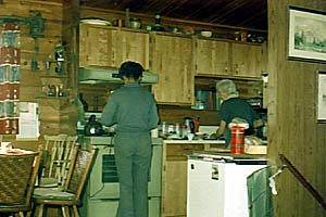My day off again. Stanley and I drove a couple of girls to the bus depot and later I took some pictures of the dishwashing crew. At 1:30am. Bill and I went for a walk downtown and back. An uneventful day. Back at my room instead of 3 roommates I had 6. We had three guests sleeping on the floor. My roommate Tom who had been drinking heavily, didn't want any guests as there is a \\$50 fine for non residents. Bill, my other roommate, told Tom that they were actually Tom's friends and almost had him believing it. We bothered Tom until 3:30 then we just went to sleep.