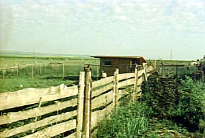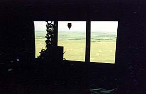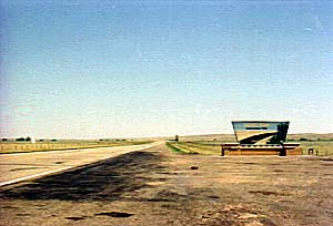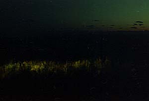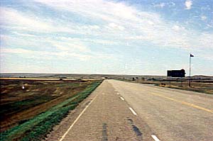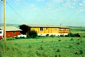 We picked up our cheques and sat on the steps by the staff post office with Judy, Sherri and Susan Winger from Toronto. We said goodbye for the sixth time then made the split decision of leaving immediately instead of tomorrow morning. I had promised my parents I would look up my cousins near Calgary so after getting lost and phoning them for directions we took some back roads and trails raising quite a dust storm all the way to their house. We were met by my three female organic farmer cousins, the Mahaffy's (Elizabeth, Gypsy and Eleanor). They had built their own house which was pretty nice. They asked what we would like to drink. When we replied, "water" they looked like they were going to shoot us. Apparently, water in these parts is a rare commodity. We ended up with a glass of goat's milk each. When asked if we'd had supper, we couldn't remember so they made us some homeade bread and organic jelly sandwiches. Out back were 20 different Rhodesian Ridgebacks which they raise in dog runs. They kept up a steady howling. Bill said it was easy to tell they were my cousins. We were introduced to Ben who had been the top Canadian Ridgback for two years in a row. We also met a terrier who had won best in Canada. There were trophies and ribbons all over the place. They put us up for the night in their dog's camper and even gave us some of the dog's blankets to keep us warm. We were warned not to set the alarm as the dogs would wake us at 7:00 the next morning. You can see for miles on the prairies - even at night.