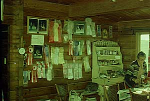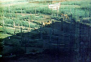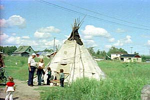 We woke up a little early at 5:00 a.m. and discovered that we had spent the night at the local dump...now we've slept everywhere. We finally found the Polar Bear Inn but it was still closed so we slept in the parking lot until 8:00 when my father spotted us. He woke us up and told us the manager had left the door open all night for us. He was more than pleased that I had not sold his car. Meanwhile my mother phoned the train station and got them to hold the train for 10 minutes as she decided last minute that we were all going on the Polar Bear Express. The twelve hour trip was boring. All you could see was tundra. The train stopped here and there to let a prospector on or off. For a diversion, Bill dared me to play my harmonica. I did and we were stared at, so that kept us amused. We got let off in Moosonee and took a freight canoe over to Moose Factory (I'm sensing a pattern with the town names). Moose Factory will never be described as a classy tourist resort. The sewer pipes were raised ten feet off the ground and all the streets were mud. All in all, it was quite quaint and picturesque. Somewhere in a teepee, we all got to try bannock. It was okay, but I think I'll stick with peanut butter and jelly. When we finally got back, I believe we slept in the motel but it is possible that Bill and I slept in the car for old times sake.