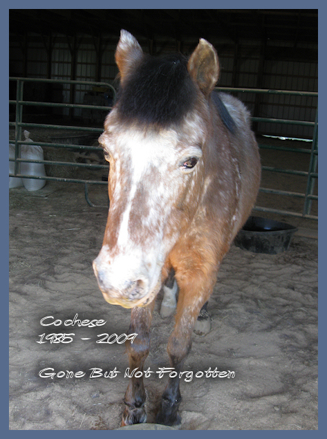 Update 2004: Cochese and I have won 3 trophies this season. I have never been so proud of such a sweet little horse.