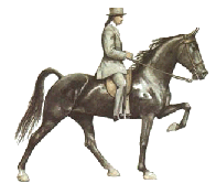 Most Walking horses are multi-gaited, but the most desirable gait is the runningwalk. TWH can flat-foot walk at speeds of four to seven miles per hour. The running walk is a very smooth ground covering eight to ten miles per hour. What exactly is a Running Walk? The running walk is a four-beat lateral gait. It is similar to a walk of any regular horse of any other breed. The difference is that it gets speeds of up to 10 miles per hour. The horse will glide over the track left by the front foot with his hind foot (right rear over right front, left rear over left front). The action of the back foot slipping over the front track is known as overstride. Overstride is unique to the walking horse breed. A Tennessee Walking Horse will nod its head in rhythm with the cadence of its feet. Walking Horses are born with the ability to do other gaits in addition to the running walk. Some of these gaits are the rack, pace, foxtrot, stepping pace, single-foot and other variations of the famous running walk. The Tennessee Walking Horse is also famous for their "rocking chair" canter, which is a collected gallop. The canter is performed in much the same way as other breeds, but the walking horse seems to have a more relaxed way of performing this gait.
