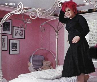 Since Jack's room is so big, Kelly scored two rooms instead. Though her very pink and girly bedroom isn't completely finished yet, it houses her collection of chairs. Most of them are from the 60's and 70's. Her favorite is her bubble chair, which hangs from the ceiling. She also has a chair from the set of Clockwork Orange, which had to be re-painted in a different color from the original--green, with white fluff inside. Her intricate bed, also unfinished, will have material draped over it for ultimate privacy. She used to have original Sharon Tate pictures on the wall. Kelly also has two bathrooms, since she doesn't like other people using her personal bathroom. Her sitting room has a couch bed for overnight guests and a collector's lamp. Also in the sitting room, Kelly has rhinestones on the floor bordering the whole room.