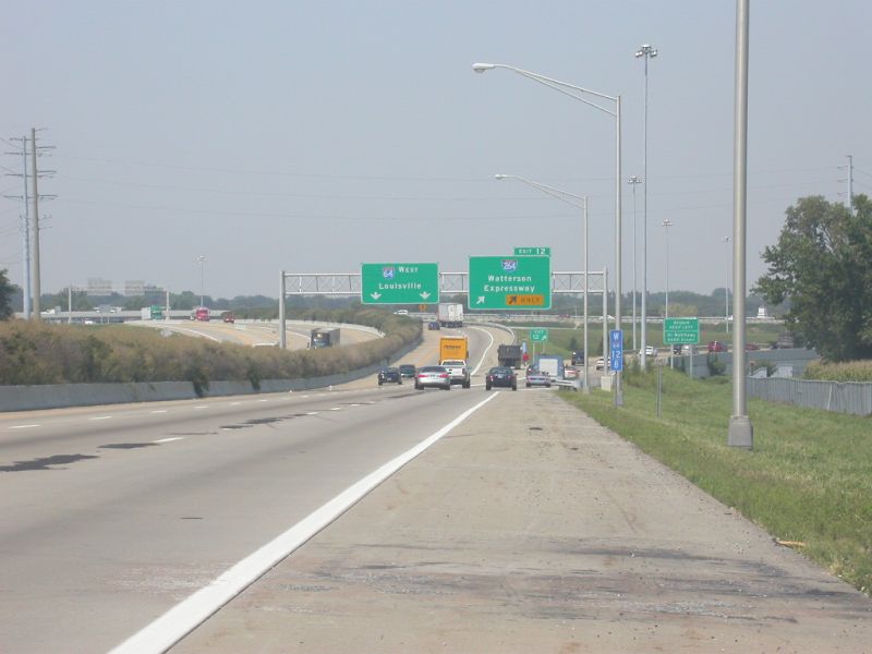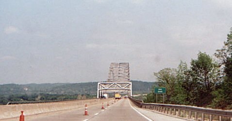 View of I-275 as it departs Kentucky and crosses the Ohio River into Indiana, Boone County. I-275 is a full circumferential by-pass of Cincinnati, Ohio. It passes through Ohio, Kentucky, and a small sliver of Indiana. This photo shows I-275 as it prepares to begin its three mile jaunt through the Hoosier State, after departing the Bluegrass State. |