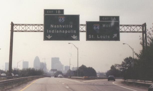 | I-264 gantry signage on I-64 West at the eastern interchange between the two routes, Jefferson County. |