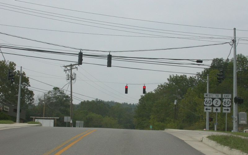 | US 60 and KY 2 shields at the starting point of KY 2 North, Olive Hill, Carter County. The TO tab above the KY 2 marker is a bit misleading, as this is in fact where KY 2 begins. |
