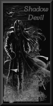 History: The creature which is most known by the name of "Shadow Devil" was not born in the way that a person would have thought. Infact, he was never born at all, he was created by the one and only Bale BlackMoon. The reason for the creation of the Devil of Shadows was a mystery to most, though it is easily explained from the time which it occured. Bale created Shadow from the shadows which rested in his heart to reduce the control that darkness had over him and that allowed him to conquer his Black Saint abilities without losing himself. Instead of simply conquering the Devil which he had created, he used those elements which Ruby had instilled in him to establish control and placed them in Shadow, though re-programmed them in the process. Shadow Devil was finally one of the three devils that served Bale, he standing next to Tridevil and Dream Devil. He, with the other three of his comrads, protected the BlackMoon name without every swaying from their cause. Shadow functioned as the assassin, and handler of all the dirty work which was needed as Bale continued to grow in power and abillities. As all things must do it, the protection of the family wasn't needed anymore, and the three devils were sent off to a paradox to constantly train untill the day which they were needed. Though, it was impossible for him to surpass Tridevil, he was his main training partner, causing his own skills to be put to the test and mastered. A voice called out to Shadow one day, and it brought him to a world that he had never seen before; Tyran. He was amazed at all of the sights, as well as the inferior creatures which lerked around him. Bale wanted him to protect his grand-daughter, who had been in Tyran for some time now. Of course, Shadow had agreed to do this and without any sort of hesitation. He and Mercia BlackMoon grew close every moment that he spent with her, and she was even one who caused emotions to actually form within his heart. When Bale found out the two were madly in love, he gave his full support by handing Shadow his free will, to a point anyway. Shadow Devil and Mercia were overjoyed, and when Bale disappeared from the realm, they stayed behind for a few short months. However, Mercia wished to find her grandfather once again, and Shadow wasn't going to stop her. The two beamed into the Lunar Realm, right to the location of Bale. They all talked and such, and it was then decided that Shadow and Mercia would actually stay in this place. Now, Shadow simply watches over his love and protects her in every way that he can, as well as doing side jobs for the Lunar Realm in the process.
