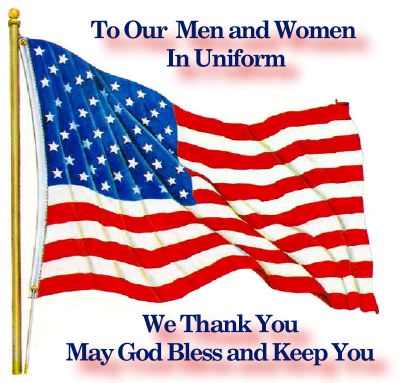 I know several of you have family (sons and grandsons, brothers and sisters, husbands, wives) serving in the Armed Forces protecting our freedom. May God bless them and keep them safe til they return to us here