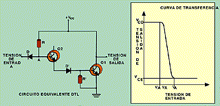 Para el cálculo de la curva de transferencia de una puerta DTL se utiliza su circuito equivalente, de dos diodos en oposición y dos uniones base - emisor