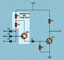 Para mejorar las puertas DTL, con respecto a su capacidad de salida, se sustituye uno de los diodos por un transistor