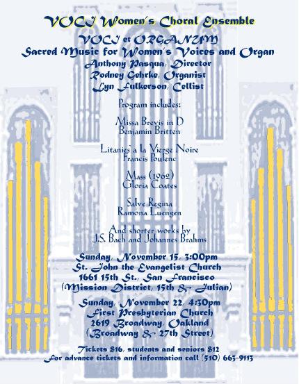 Sunday, November 22, 1998, 4:30pm, First Presbyterian Church, Oakland