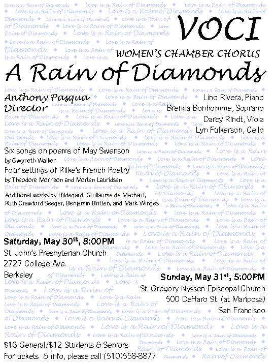 Fall 1998: Voci et Organum Spring 1998: A Rain of Diamonds Fall 1997: Within the Wintry Grove |