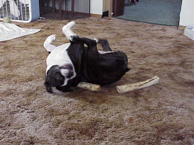 Trying to get the "Boodog" smell on both her and Brody's rawhides