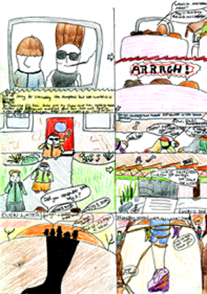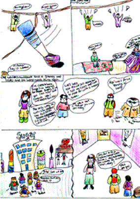 Yorkie " hey it's falling,it worked" Jamie"er how do we get down?" Leon "good question" One jump later "WEEEEEEEEEEEEEEEEEEEEEEEEEEEEEEEEE" screams Jamie but Leon cries "Arrgh help" Franny "MMM food at last" Porrr Yorkie is stuck "how did you get up?' Tommy Use the shoe lace.Arrgh I've droped me crisps" One walkers multipack and agranary loaf later and thenworld needs saving again... Holly appears wearing combats!?!@!"I've come to help,Ringo's in hospital for plastic surgery,I've got flat hair and combats uggh!we need to act now" Tommy "We'll help,therest are still eating but I spilt me crisps and had to make do with a measly buttie" Jmaie and yorkie squelch into view "Hey Tommy wait for us" "oh I thoght you wre still eating." Holly "The only way to win is to defeat the veil ed.Damn trhis wonderbra i'm burning it when we've won" At sugar H.Q Jamie "Gulp here we are" Holly Tasteless tower as I call it" Holly has a costume change "Sorry but to fit in I have to change 5 times a day but the wonderbra on at all times,ready?" Jamie "yeah lets go!"