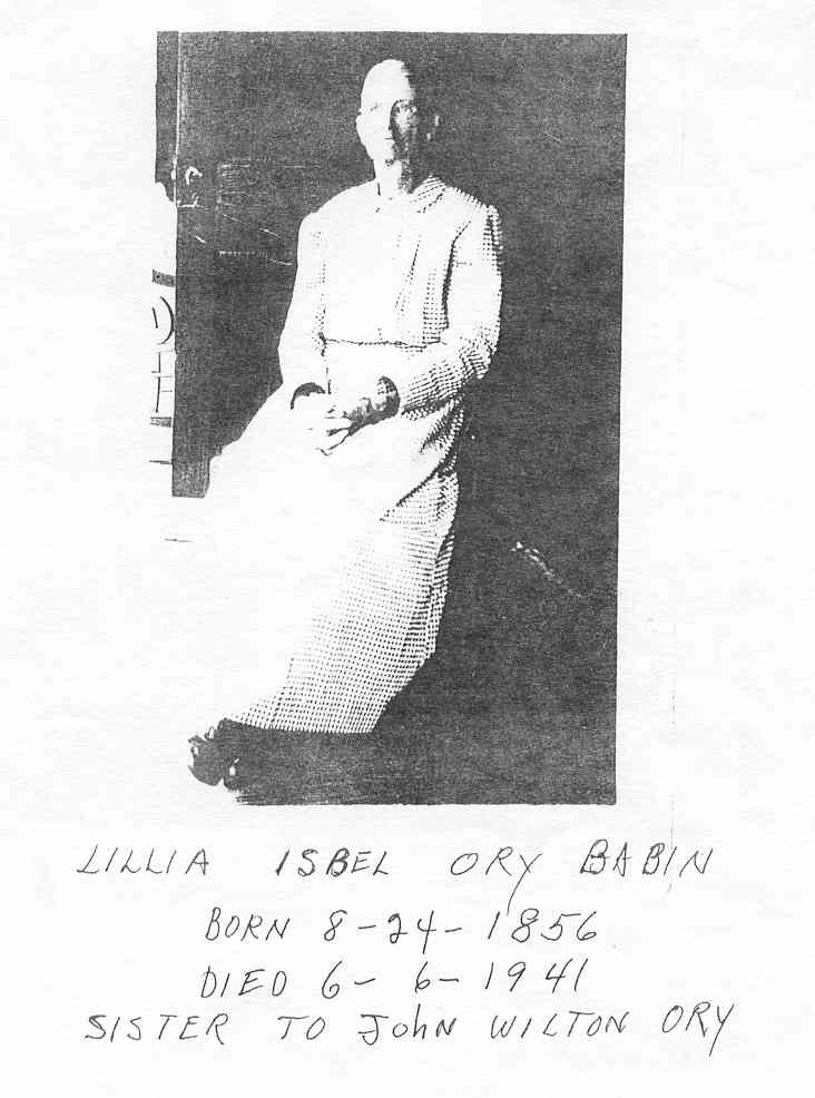John Phillip was a farmer by trade and somehow made it through a very rough and harrowing time, the Civil War. If you look carefully at the dates of the deceased children they were born right near the beginning of and through the end of the Civil War. This was a particularly trying time for the people in Louisiana. Everything was in short supply and times were tough on all. All the while he continued to provide for his family, probably moving from place to place throughout Ascension Parish. From Hope Villa to Donaldsonville and then to Gonzales and then back to Donaldsonville sometime before the 1880 Census. After the Civil War, Louisiana was occupied for nearly the next twenty years. Carpetbaggers ran the State and locals had little or no recourse but to leave the State. But where would they go? Most of the old South was under occupation and you had to go a far piece to get away from the North's occupation. Out West maybe? Both John Phillip and Catherine stayed and raised their children and both outlived the Reconstruction Period, with John dying on August 02, 1886. Catherine remained in Donaldsonville and eventually became ill for two weeks and she died in 1908 accordig to the Donaldsonville Chief. Both are buried in the Prairieville Cemetery just behind St. John the Evangelist Church on Highway 73. Isabelle Lillia Ory Babin is also buried just a short distance to the east in the same cemetery with most of her married family close by. I would be willing to believe that neither one forgot the horrors of the War or Reconstruction. My great-grandfather Aurelius grew up during the Reconstruction period and died at his home on Coontrap Road on February 22, 1958 according to the Baton Rouge Advocate.