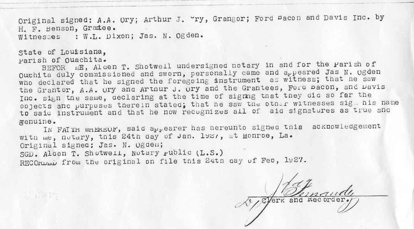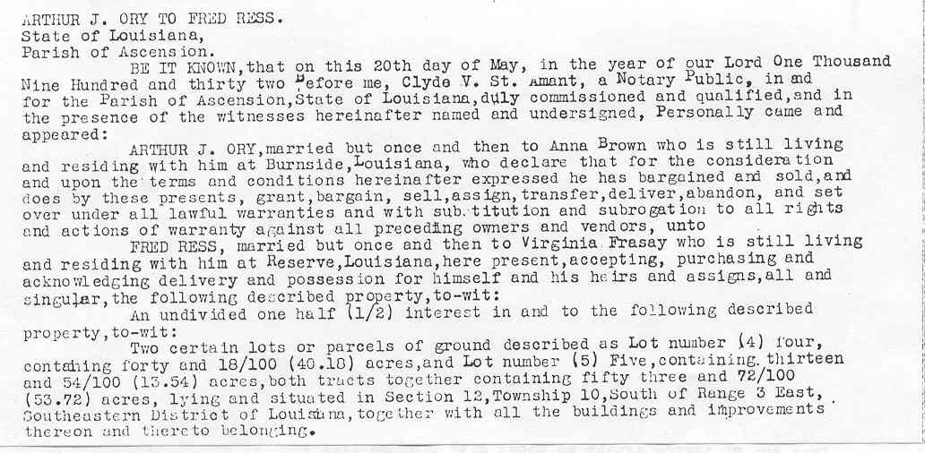 Arthur was born on February 04, 1891 somewhere in Ascension Parish on February 04, 1891 and died on September 05, 1958. He was the eldest son of Aurelius Absolom ORY
