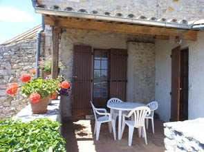 Drie van onze kamers hebben een eigen privaat terras voorzien van een tuinstel. De vierde geeft uit op een, eveneens bemeubelde, binnenkoer.