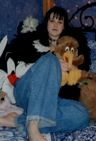 Here's a real gothy pic of me in my room...*smiles* this is a while ago, my hair's a lot longer now... and i'm more evil.... *Smiles*