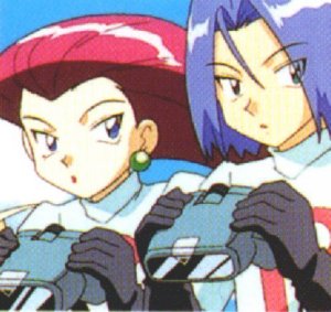 Names: Jessie (Musashi) and James (Kojiro) Jessie and James are both part of Team Rocket. Pokémon: James:Wezzing Jessie: Arbok,and Lickitung Jessie accidently caught Lickitung in the episode after the Bulbasaur Festival.