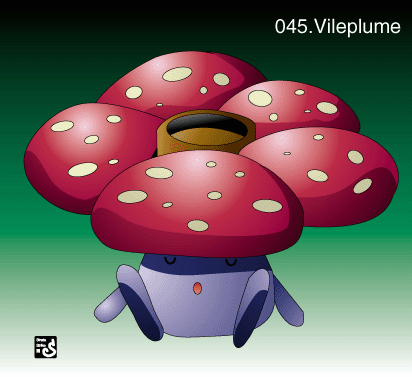 Vileplume is Oddish's last stage. Gloom evolves into Vileplume. To evolve Gloom into Vile Plume you need to use a Leaf Stone. Vile Plume's Japanise name is Rafureshia.