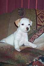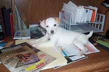 sold Pup #1, WHIZER is a female that is all white except a couple of small spots on the ears. Whizer has been my favorite pup this litter she always wants me to pick her up and she has been great around Chase (our son) cause she has been his favorite too! f5tvf5tvf5tvf5tv8yu736< (this was Whizer's added touch as she was on top of my desk.) She loves to play and sleep by my face and run to me when Chase is a chasin'. As you can see she is great at house work to. A very typical Jack Russell pup! She is still on my desk, and she is now trying to take off the rubber grip that is on a pen! I need to go and play with her now! Wish you were here! You can't go wrong on this little doll!