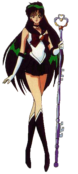 Setsuna is a mysterious older girl. Setsuna is much older than the rest of the Senshi (18 when she first appears in SailormoonR), not much is known about her since she is shrouded in mystery. As a Sailor Senshi, Sailorpluto rarely intereferes with the battles the rest of the Senshi get in as to not disrupt the future, if Sailorpluto does appear that means something bad is going to happen. Sailorpluto has seen the future she is the gaurdian to the gateway between now and the future, and she is the one who sent Chibiusa (whom she calls 'Small Lady') back in time to find the ginzuishou (Silver Imperium Crystal). Sailorpluto is also the one Chibiusa was speaking to when she was looking into the Luna-P Ball. As well, Sailorpluto is also the one who took Hotaru from her father. Sailorpluto is the keeper of the gateway of time, though her attacks do not involve time, they are extremely devestating.