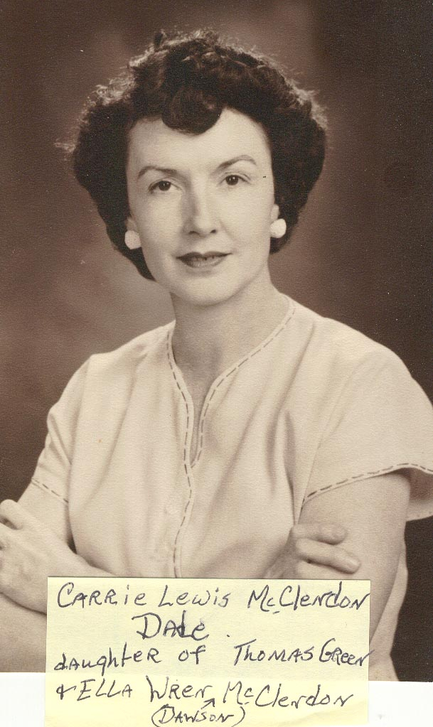Carry Lewis McCLENDON, a.k.a., Carrie Lewis McCLENDON (November 19, 1910 in Bogalusa, Washington Parish, Louisiana - passed away in 1992).
