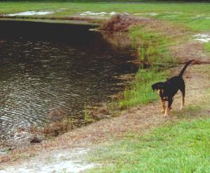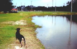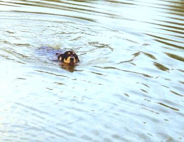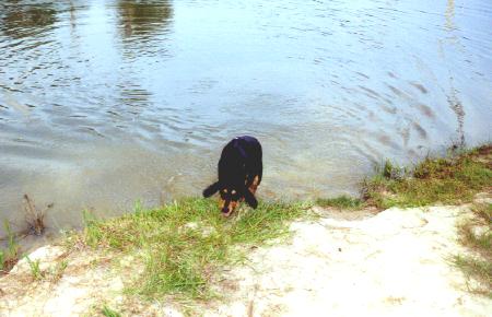 Ever since July 4th when Mommy and Daddy threw me into Aunt Carol's pool, I started swimming in the pond at the park by our apartment. I love it! Every time they take me to the park I have to go for a swim! I also love running around the shallow edge and splashing water all over Mommy!