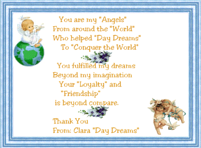 "My Banners For You" "My Gifts For You" Day Dreams Gift for Winning the Academy Awards "My gift for you from Day Dreams for the win at the Kings Level of Bards of Fortune 11/27/03" "My gift for you for taking Day Dreams to the Dome 3/11/02" "My gift for you for taking Day Dreams to the Warzone 3/04/02" "My new gift for you 2/4/02" "My new gift for you 11/03/01" "This gift was made by Lady Lisa, for me to give to you." "Thank you Lady Lisa." "Circle 10/23 to 10/28"