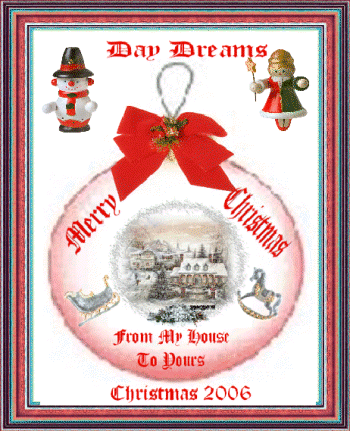 "This page is encompassing all of the holidays, starting with Christmas. It will be edited quite often, showing all my gifts received on the individual holidays, so enjoy." Please give it a momment to load, as it will be graphic intense." "My Holiday Page is dedicated to my Hubby John. Thank You Kay from MacMyBaby Thank You Laure from Raven Queen Domain Thank You Lynn (Cherokee Spirit) TL For Pioneers and Native Pride at TWF Thank You Santa Cyndi and Santa Patty Cyndi (Gaia's Child) and Patty (Enchanted Castle) Thank You Judy from Lady J's Design Thank You Mary from LaReina Persians Plus Thank You Eunice from To My Granddaughter and God's Page "Please do not remove any graphics from this site, as the background and graphics were made especially for me by my daughter-in-law."