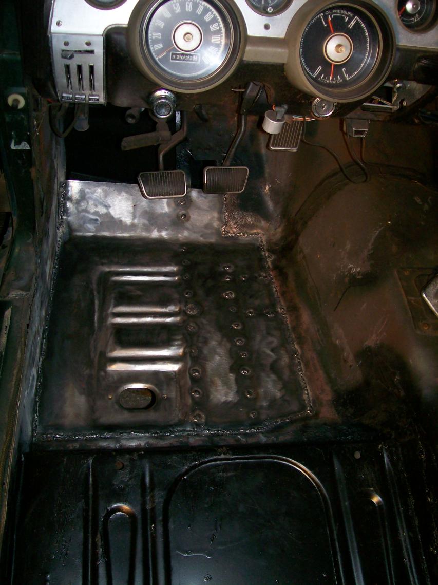 Exposed since May 2008, I decided to finally start replacing the drivers floor pan. This image was taken before I began. It looked rough. | After cleaning with a wire wheel I applied Eastwood's Rust Encapsulator and a Chassis Black enamel. |