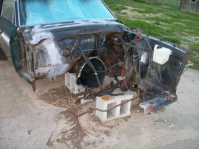 The right suspension and frame rail was removed. |  The interior was stripped and is full of parts. |