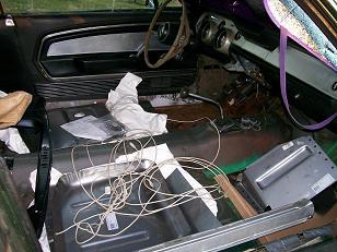 In Decemeber 2007, the right front floor pan and frame rail were replaced. |  Here is a shot of the new section of floor pan from the firewall side. |