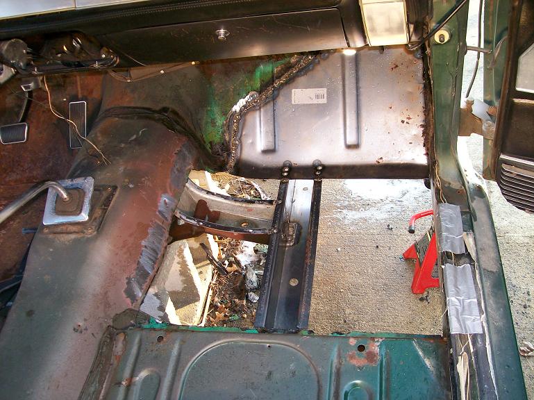 passenger floor pan was replaced along with the frame rail under that
