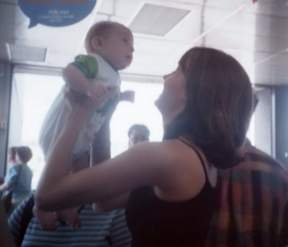 This is Mandy holding and enjoying Justin for the first time. (At the airport)