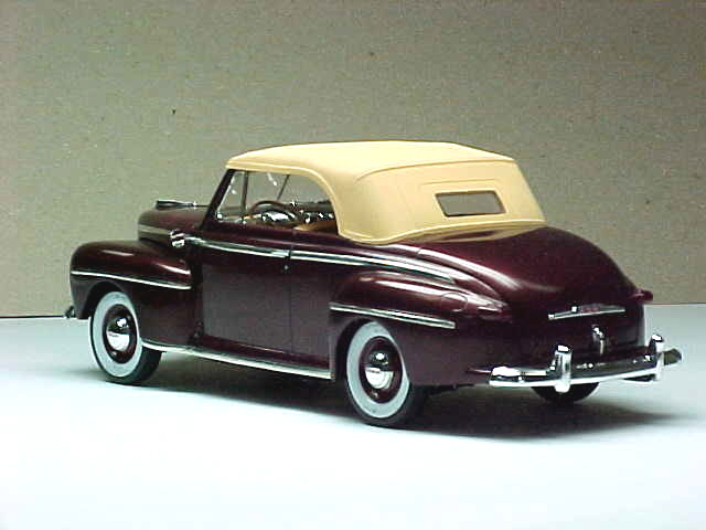 This model was built box stock. The exterior paint is Model Master Burgundy Red Metallic and the top and interior are Model Master Interior Tan. This kit went together very well and had fine detail which made it a good Box Stock subject.