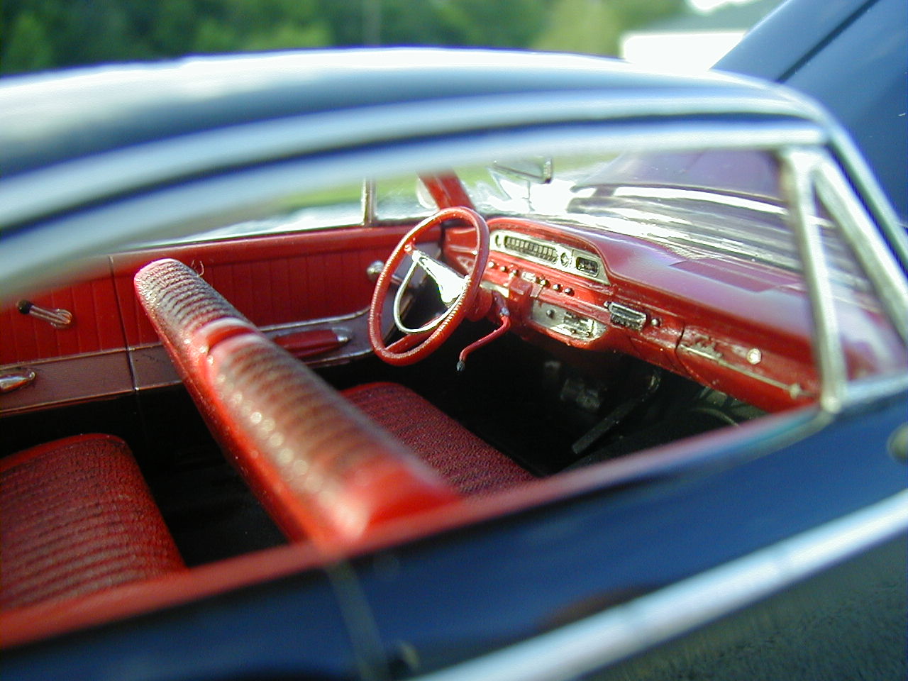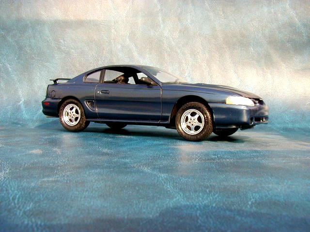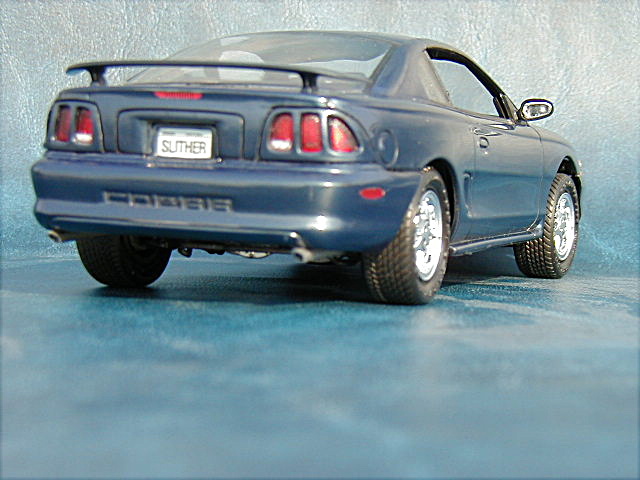 Although this kit was built box stock, it has been detailed as much as painting will allow. Using metalizer and various black paints, the engine and chassis looks really good. The best part of the model is the interior. I tried something new (for me anyway) by two toning the seats with semi-gloos black on the outer cushions and Exhaust Metalizer for the inserts. This worked out great. The body is painted Testors Artic Blue over black primer.All in all, it's a nice looking model.