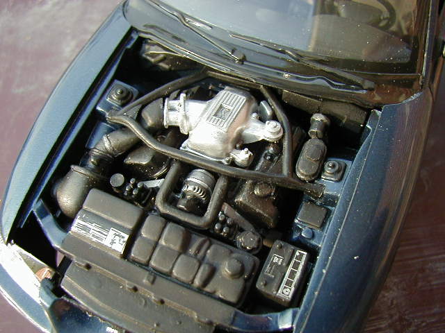 This project was painted with MCW Black Lacquer and top coated with a bunch of clear coats and polished out. The engine compartment is fully detailed. MCG photo etch detail set really trimmed out the details nicely.