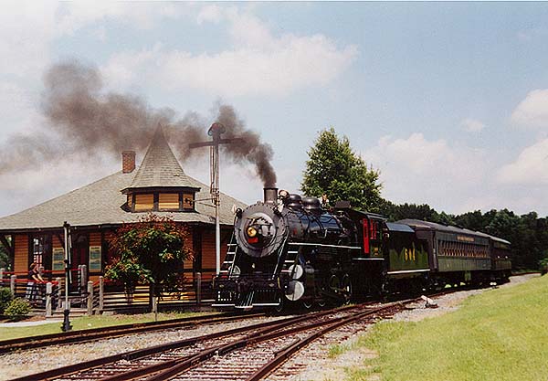 One of the stars at the North Carolina Transportation museum in Spencer, NC is the 604 seen here hauling some of the museums passenger cars. (Click on image for full size view) |