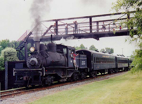 A roster shot of the 604 at Spencer, NC. Steam is only run on the weekend at the museum. The month of August had the 604 with the honors and in September the museums Shay will fill the bill. During weekdays diesels perform the chores. (Click on image for full size view) |