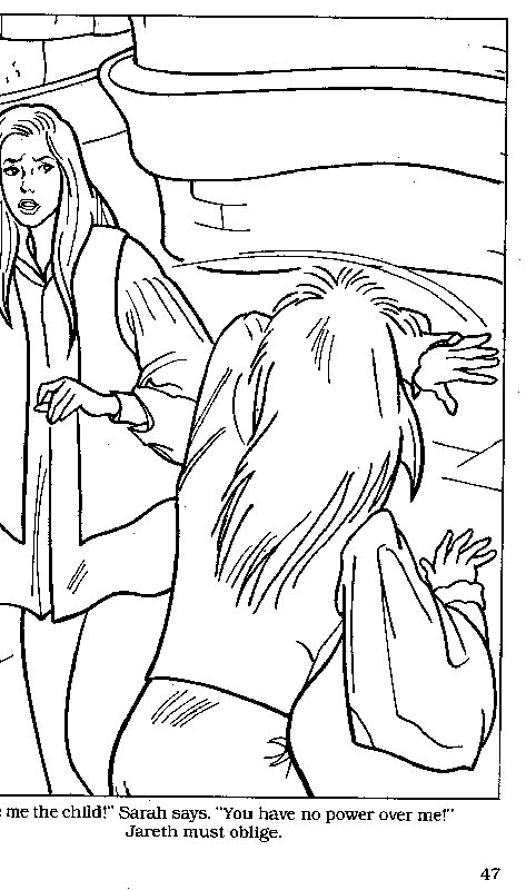 Scan10 - Sarah becomes temporarily confused when Jareth tries the 'look over there' tactic during the confrontation scene