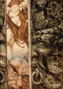 An auburn-haired babe that would become Sarah, enters the Labyrinth with Hoggle. Drawn in 1985 pre-production to Labyrinth.
