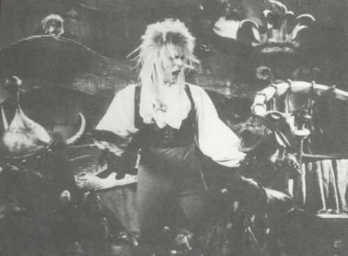 Forget the laughing Gnome and welcome, this coming Christmas, the singing Goblin! Bowie’s ever-increasingly list of thespian characters are nothing if not consistently bizarre - he’s played a ghost, an alien, a gigolo, a Victorian freak, a self-destructive anarchist, a vampire, a POW, a wally, a self-parody rock star, a cool killer, a crass commercialist and now (pause for breathe) in Jim Henson’s forthcoming $25 million dollar fantasy adventure "Labyrinth", he plays an egocentric, power crazy, romantic villain in the guise of Jareth, the Goblin King. The film opened in the States on June 27, but we’ll have to wait till the end of the year to see if Bowie is choosing his roles wisely or if, supposedly frequently offered parts, as "Martians playing guitar" are no that far removed from the reality of practice. In this feature, we take a look at the stories behind the making of the film which Tri-Star (it’s distributor) hope to be the smash hit of 1986 …