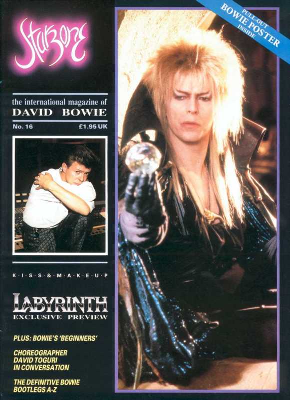 Luckily, I have been able to obtain a copy of the special Labyrinth preview issue (no 16) of Starzone, a now sadly, defunct high quality David Bowie fanzine edited by David Currie. It has seven pages of stuff on Labyrinth, including a sneak preview of the movie, review of the album and some full page pics, including a beautiful Jareth one on the back cover. The poster, advertised on the cover (in case you wonder) isn’t one of Jareth, but of Dave at that time, out of makeup and looking super spiffy in a black shirt and white pants. This magazine is easily obtained from eBay, you need to search for "Starzone" as it is often not key-worded as a Labyrinth item. Be prepared to dig deep (but of course you already knew that). Okay, on with the transcribing!