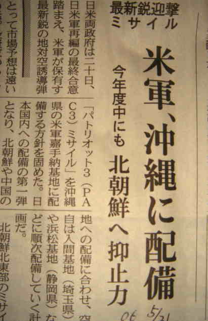 アメリカ・北朝鮮と組んだ軍需利権一派は 小泉のようなトッチャん坊やたちを操って 究極の軍事泥棒体制を強化して行く。 安倍政権誕生のためにテポドン花火打ち上げを報じる統一教会系サイト 日本の資産と技術を根こそぎ奪うためには 日本ネオコン坊やと北朝鮮を使って 絶えず危機を煽り危機作り出して行くしかない。 北朝鮮のテポドン発射に感謝する 靖国軍需利権の使い走り議員 ![]() ミサイル発射なら安倍君に総裁を、、 「テポドン・晋三連合」の勝ち、w 毎日新聞7・23 |