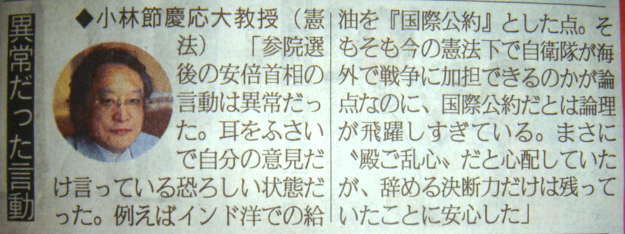 を述べた。安倍氏周辺は「日ごろ各種選挙でお世話になっているので、そのお礼の意味をこめて出席した。国家秘密法制定とは直接、関係はない」