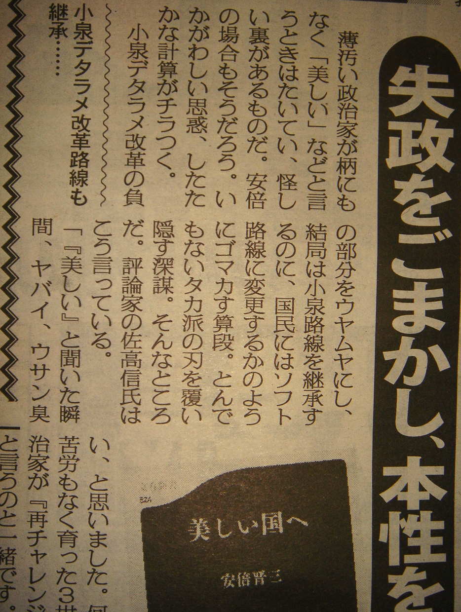 ![]() 『美しい国へ』自民党幹事長安倍晋三(文春新書) 『美しい国 日本の使命』 統一教会日本支部初代会長 久保木修己(世界日報社) w、、 06-9-13日ゲンダイ |