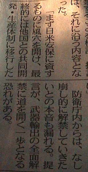 ▽武器輸出三原則を見直し米国への禁輸緩和。